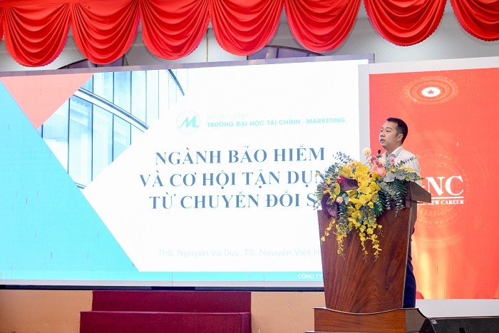 ThS. Nguyễn Vũ Duy, UFM trình bày tham luận: “Vai trò Ngành bảo hiểm trong quá trình chuyển đổi số gắn với phát triển doanh nghiệp”