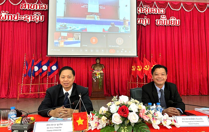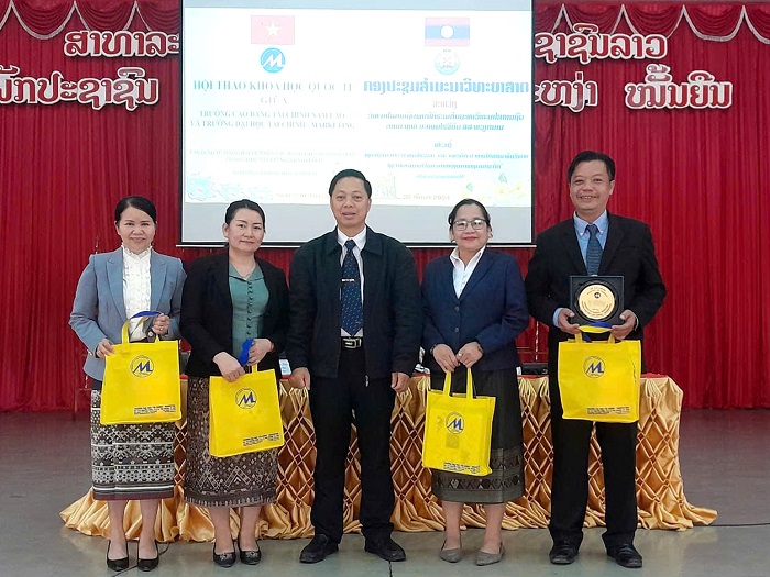 Sáng ngày 25/12/2024, Trường Đại học Tài chính – Marketing và Trường Cao đẳng Tài chính Nam Lào phối hợp tổ chức Hội thảo khoa học quốc tế với chủ đề: “Vận dụng tư tưởng Hồ Chí Minh và tư tưởng Kaysone Phomvihane trong giải quyết khủng hoảng kinh tế”. Hội thảo được diễn ra tại Trường Cao đẳng Tài chính Nam Lào (Pắkse, Champasắk, Lào).