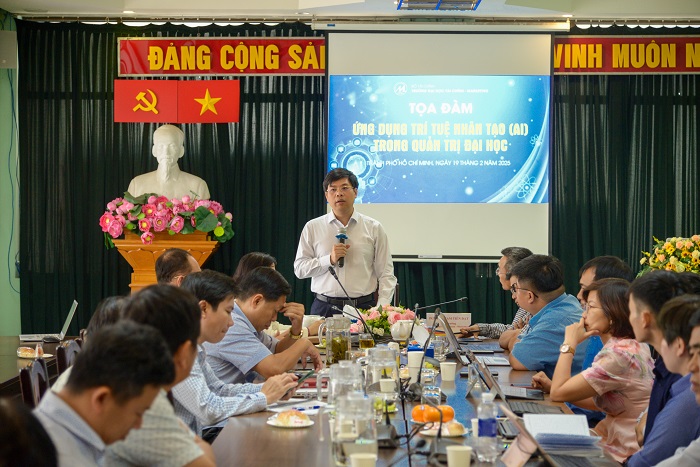 Sáng ngày 19/02/2025, Trường Đại học Tài chính - Marketing tổ chức Tọa đàm “Ứng dụng trí tuệ nhân tạo (AI) trong quản trị đại học”. Về phía khách mời có sự tham dự của Ông Đoàn Đại Phong, Phó Tổng giám đốc, Tổng công ty giải pháp doanh nghiệp viettel (Viettel Solutions); Ông Nguyễn Hữu Tuấn, Phó Giám đốc Trung tâm Giải pháp miền Nam - Viettel Solutions cùng các chuyên gia của Trung tâm Giải pháp miền Nam - Viettel Solutions. Về phía nhà trường, có sự tham dự của PGS.TS. Hồ Thủy Tiên, Chủ tịch Hội đồng trường; PGS.TS. Phạm Tiến Đạt, Hiệu trưởng Nhà trường; PGS.TS. Phạm Quốc Việt, Phó Hiệu trưởng; TS. Lê Trung Đạo, Phó Hiệu trưởng; TS. Cao Tấn Huy, Phó Hiệu trưởng cùng lãnh đạo các đơn vị thuộc trường.