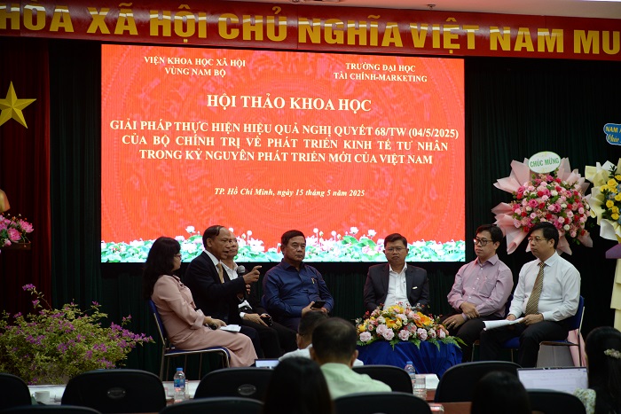 Phát biểu khai mạc, PGS.TS Phạm Tiến Đạt, Hiệu trưởng Trường ĐH Tài chính – Marketing khẳng định Nghị quyết 68 là sự kế thừa và phát triển lớn trong tư duy của Đảng về KTTN, thể hiện tầm nhìn mới và giải pháp toàn diện nhằm đưa khu vực này trở thành một động lực quan trọng của nền kinh tế thị trường định hướng xã hội chủ nghĩa. PGS.TS Phạm Tiến Đạt cũng nhấn mạnh, trong kỷ nguyên phát triển mới với mục tiêu đến năm 2045 đưa Việt Nam trở thành quốc gia phát triển, khu vực KTTN cần đóng vai trò then chốt trong đổi mới, sáng tạo, tạo việc làm và tăng trưởng bền vững.